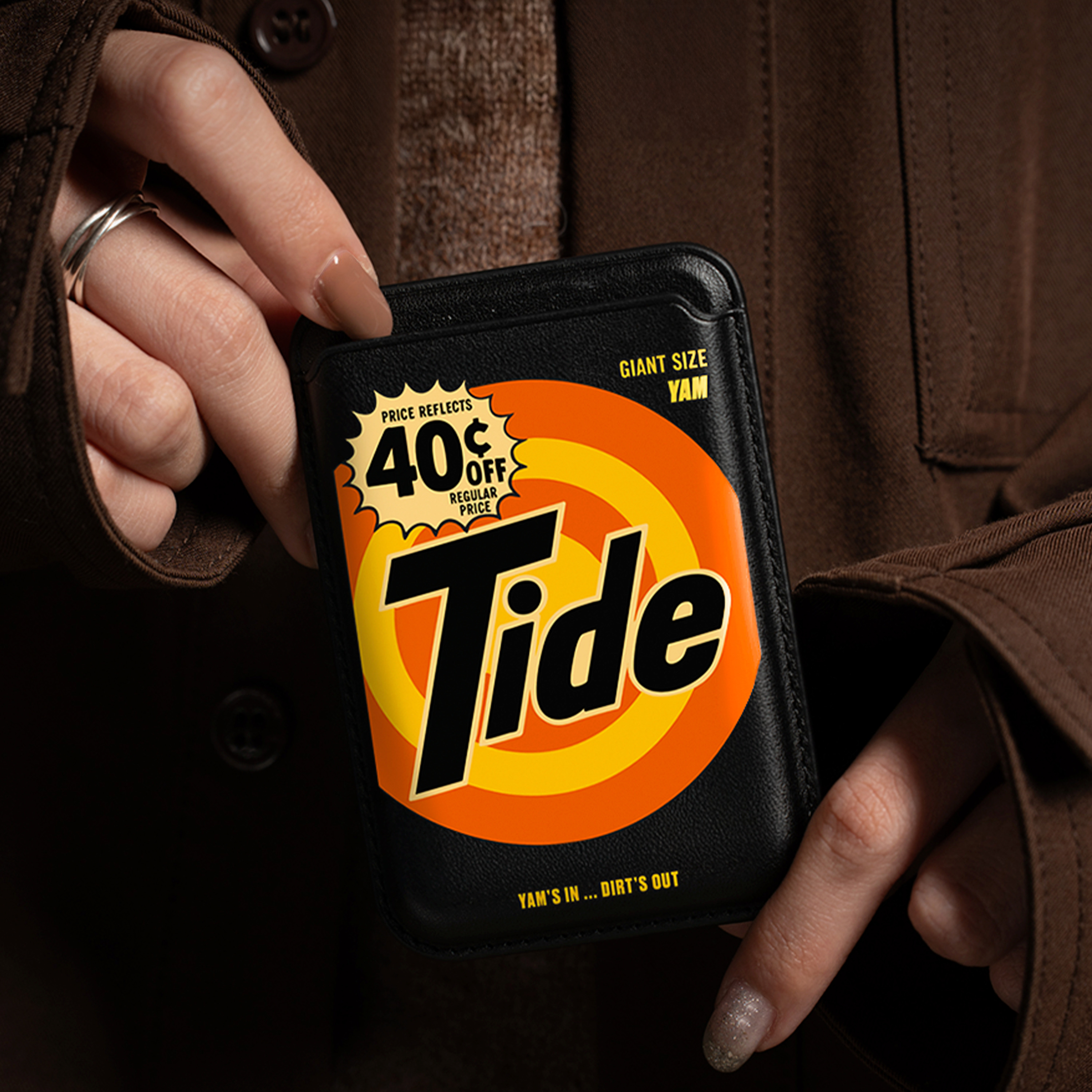 Этот картхолдер с культовой эстетикой упаковки Tide моментально привлечёт внимание и добавит в Ваш образ ироничности и цвета. Он не только яркий, но и максимально удобный.