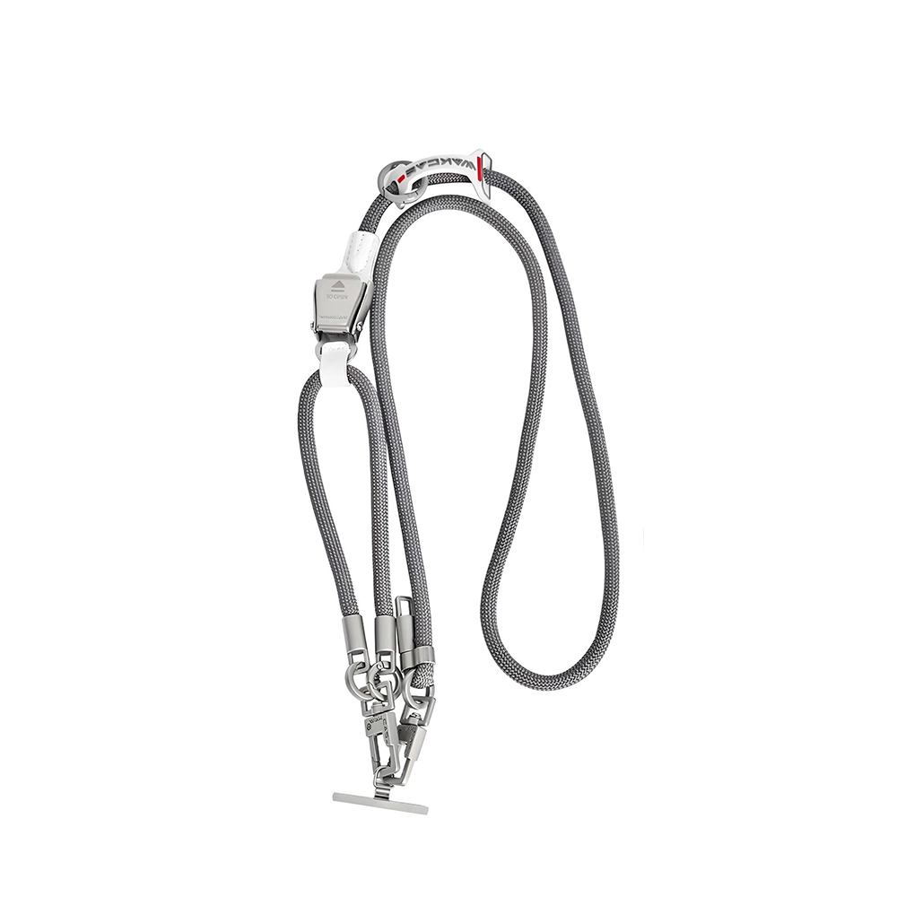 Изготовлен из прочного нейлона в сером цвете с оригинальной фурнитурой. Металлическое кольцо и карабин позволяют легко крепить ремешок к ключам, чехлу телефона, сумке или другому аксессуару.
