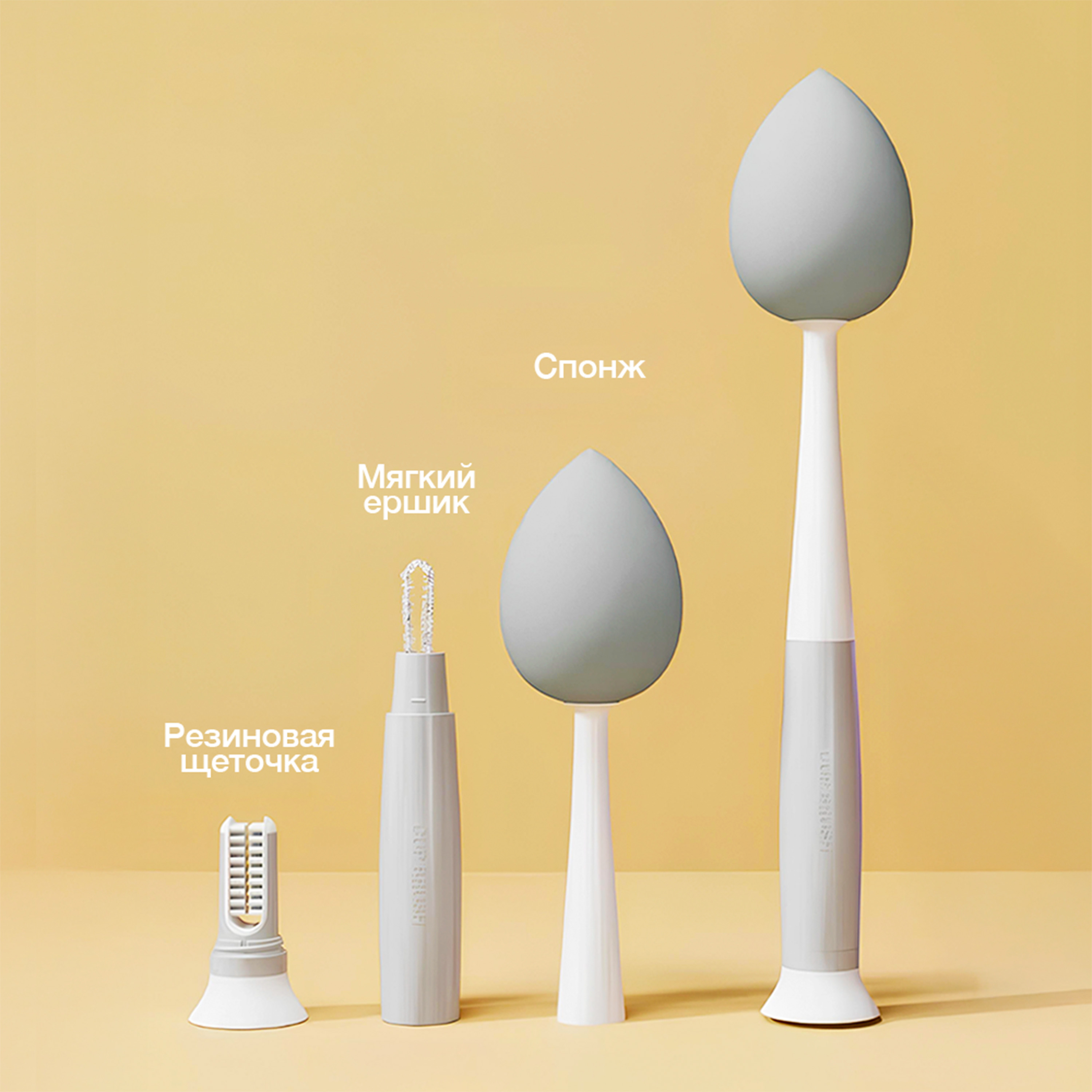 - Губчатую насадку — мягко очищает внутренние стенки без царапин.