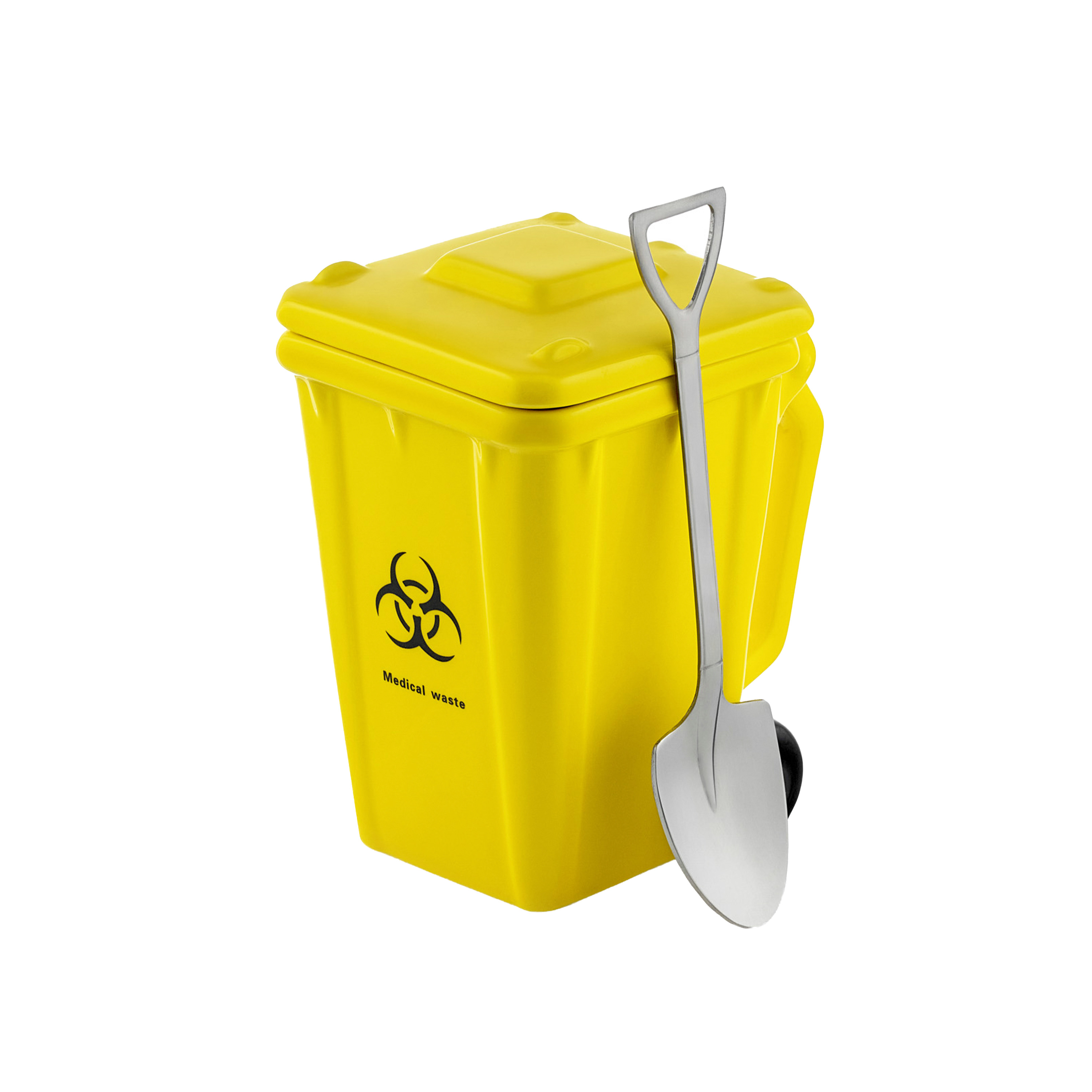 Этот оригинальный керамический контейнер — идеальный аксессуар для вашего дома или офиса! Выполненный в виде миниатюрного мусорного бака, он станет стильным и необычным элементом декора. В комплекте идет мини-лопатка в форме садовой лопаты, которая придает изделию особый шарм и может использоваться как ложка для сахара, соли, специй или даже кофе.