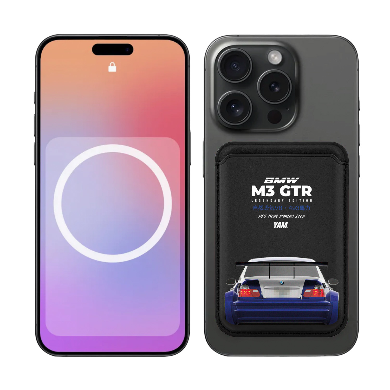 Четкая типографика, японские акценты и минималистичный черный фон формируют визуальный образ, который выглядит современно и лаконично. Картхолдер надежно держится на MagSafe, плотно прилегает к корпусу телефона и не утяжеляет устройство.