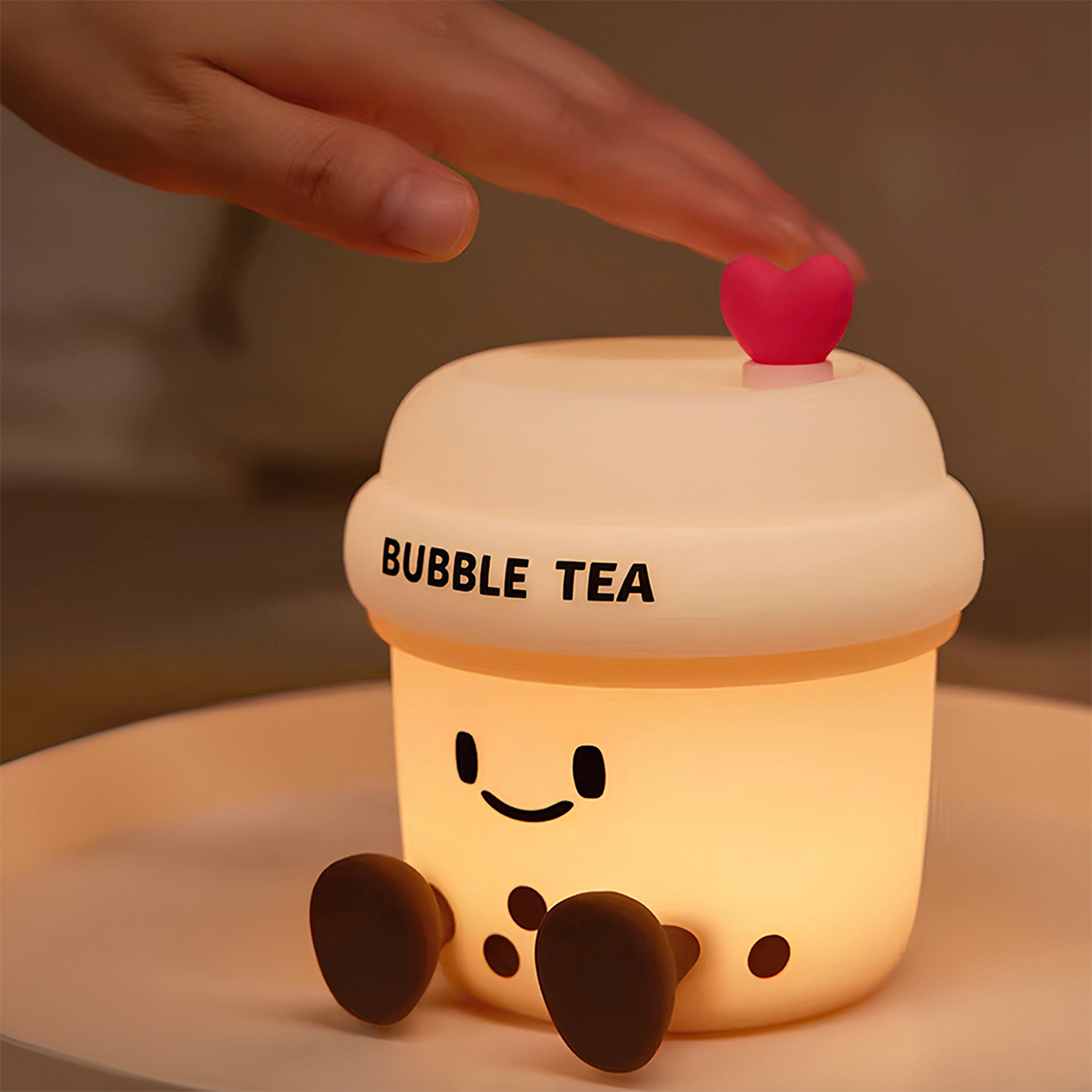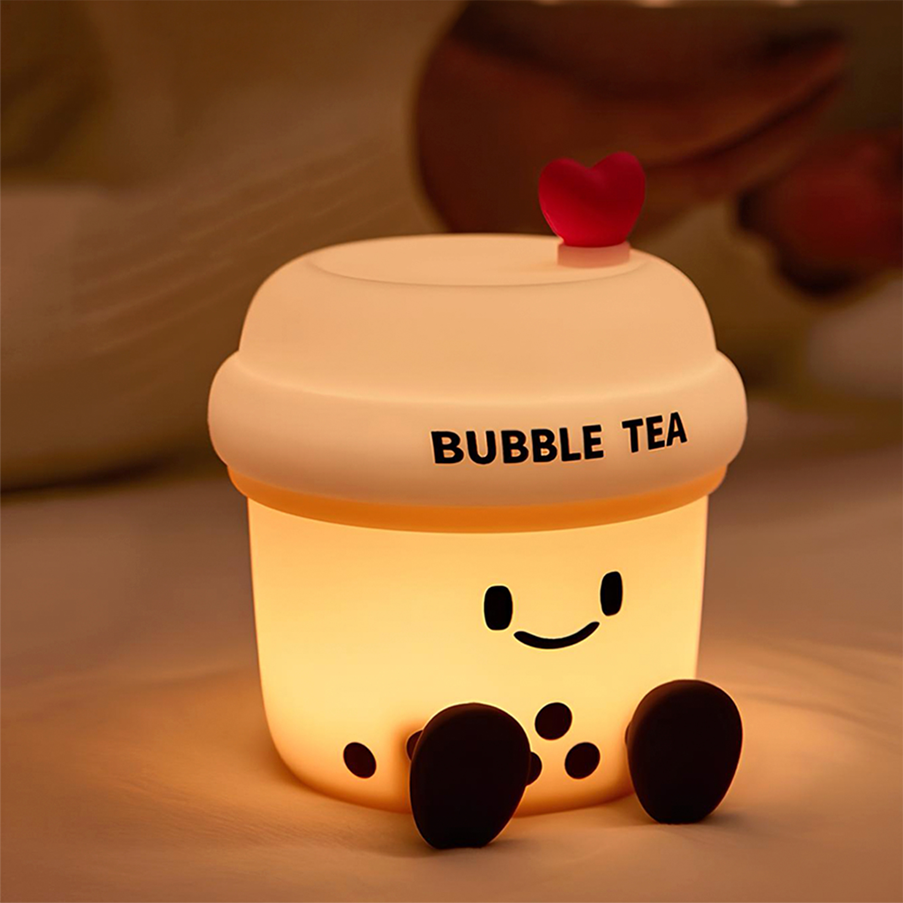 Ночник выполнен в виде стакана bubble tea с забавным персонажем — поднимает настроение, создаёт уют и добавляет элемент милого лайфстайла в интерьер.