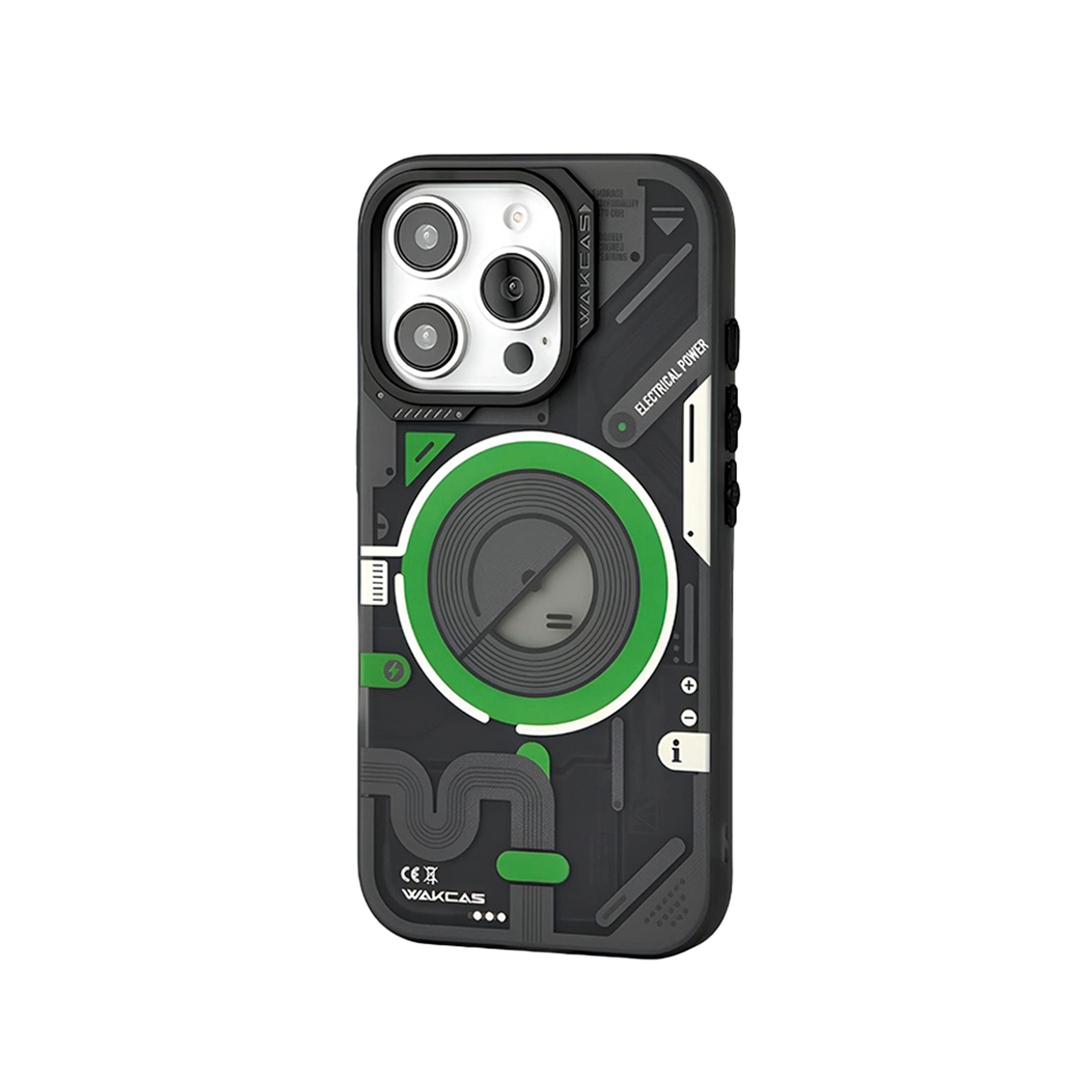 Футуристичный чехол с прозрачной вставкой и яркими акцентами создаёт эффект технологичного устройства и подчёркивает стиль